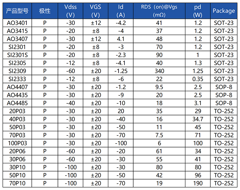 五.固得沃克PMOS选型推荐